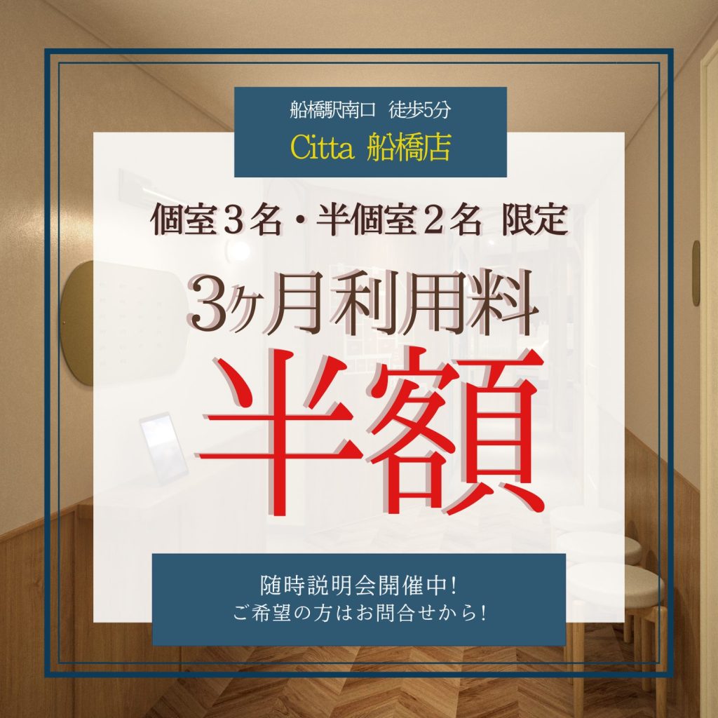 Citta店 3か月間利用料「半額」キャンペーンを開催いたします。